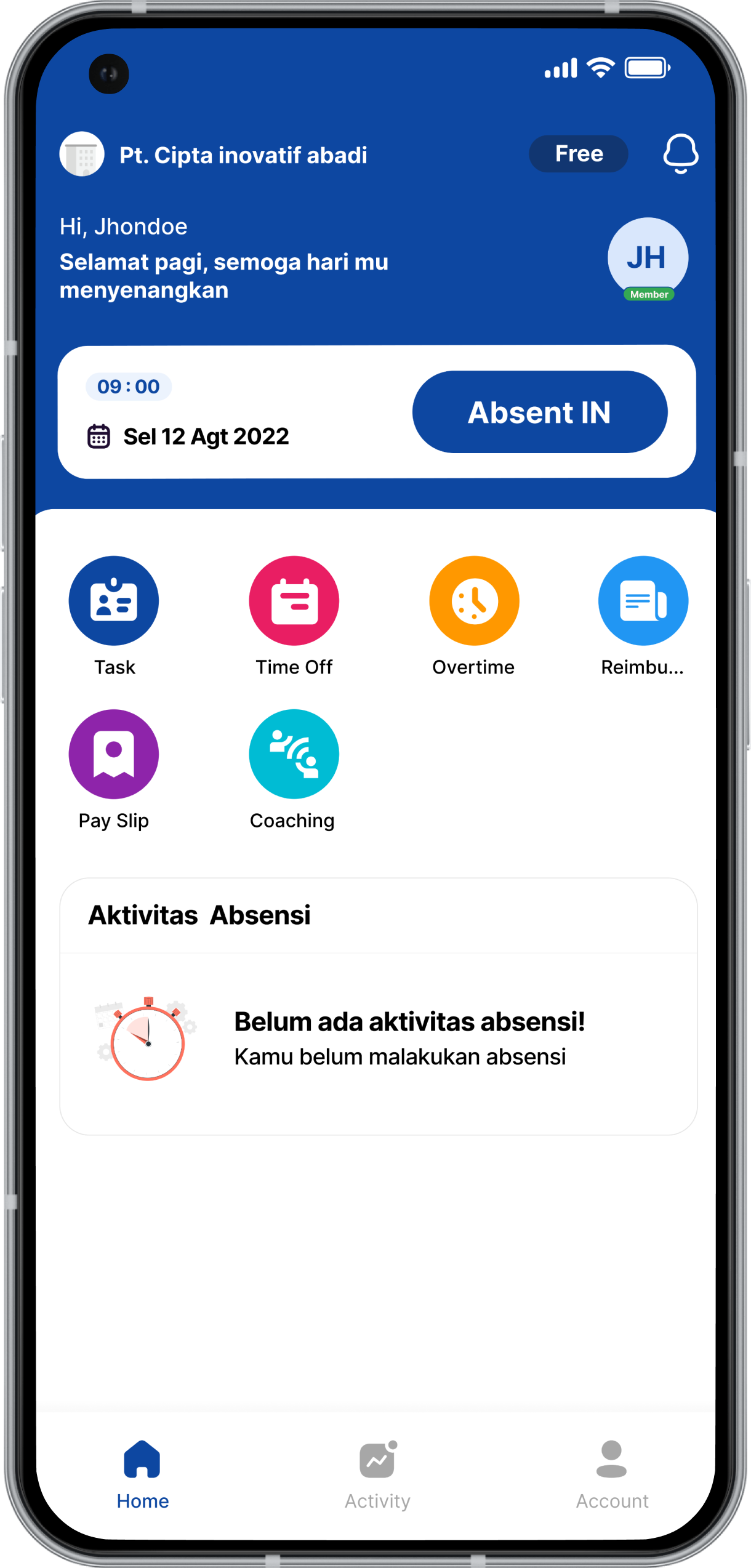 Menggunakan fitur deteksi sidik jari dan lokasi absensi, akses slip gaji, pengajuan dan approval cuti, reimbursement dan lembur