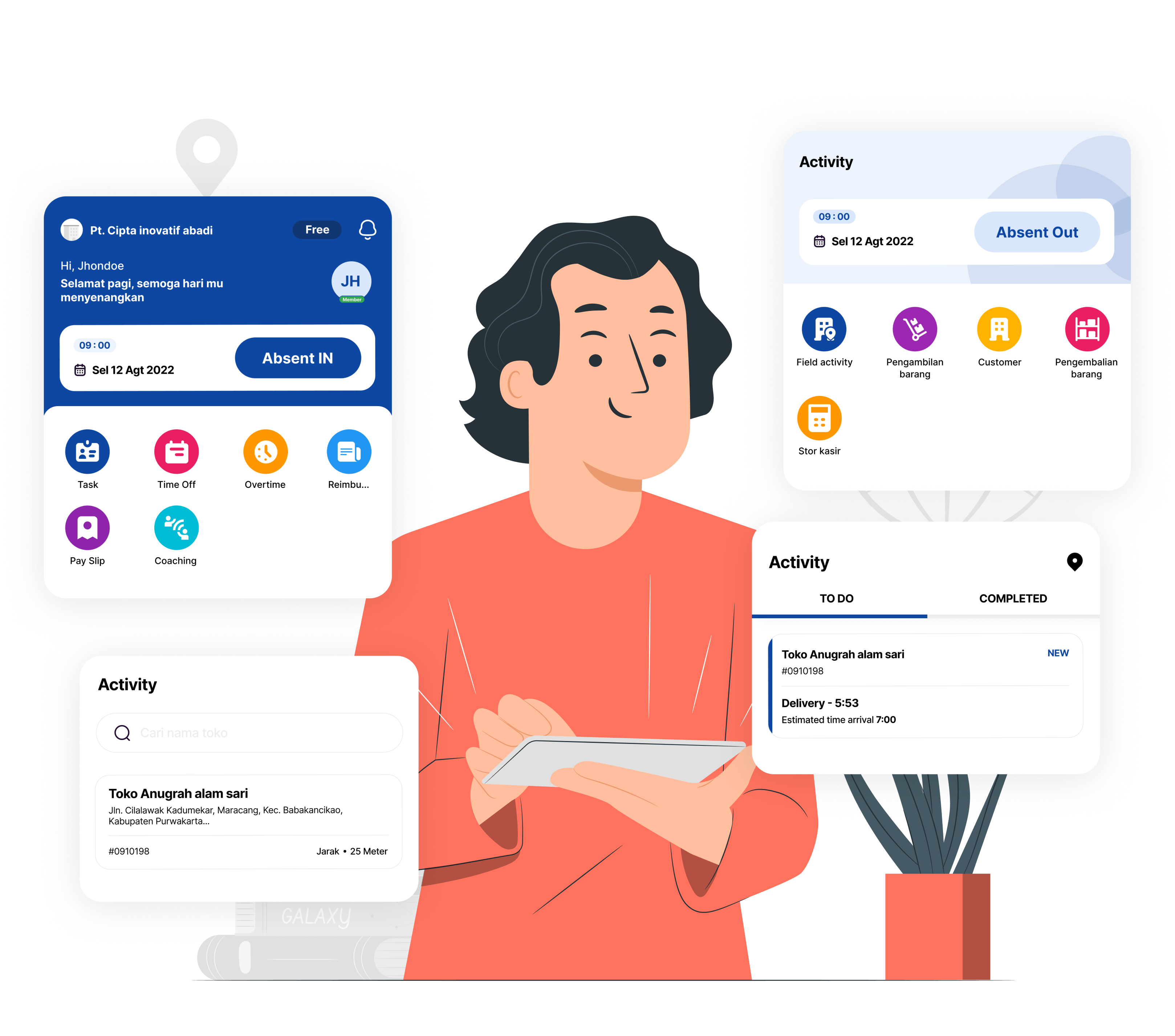 Memastikan kunjungan dilakukan, Mencatat aktivitas canvassing dan merchandiser serta fitur lainnya.